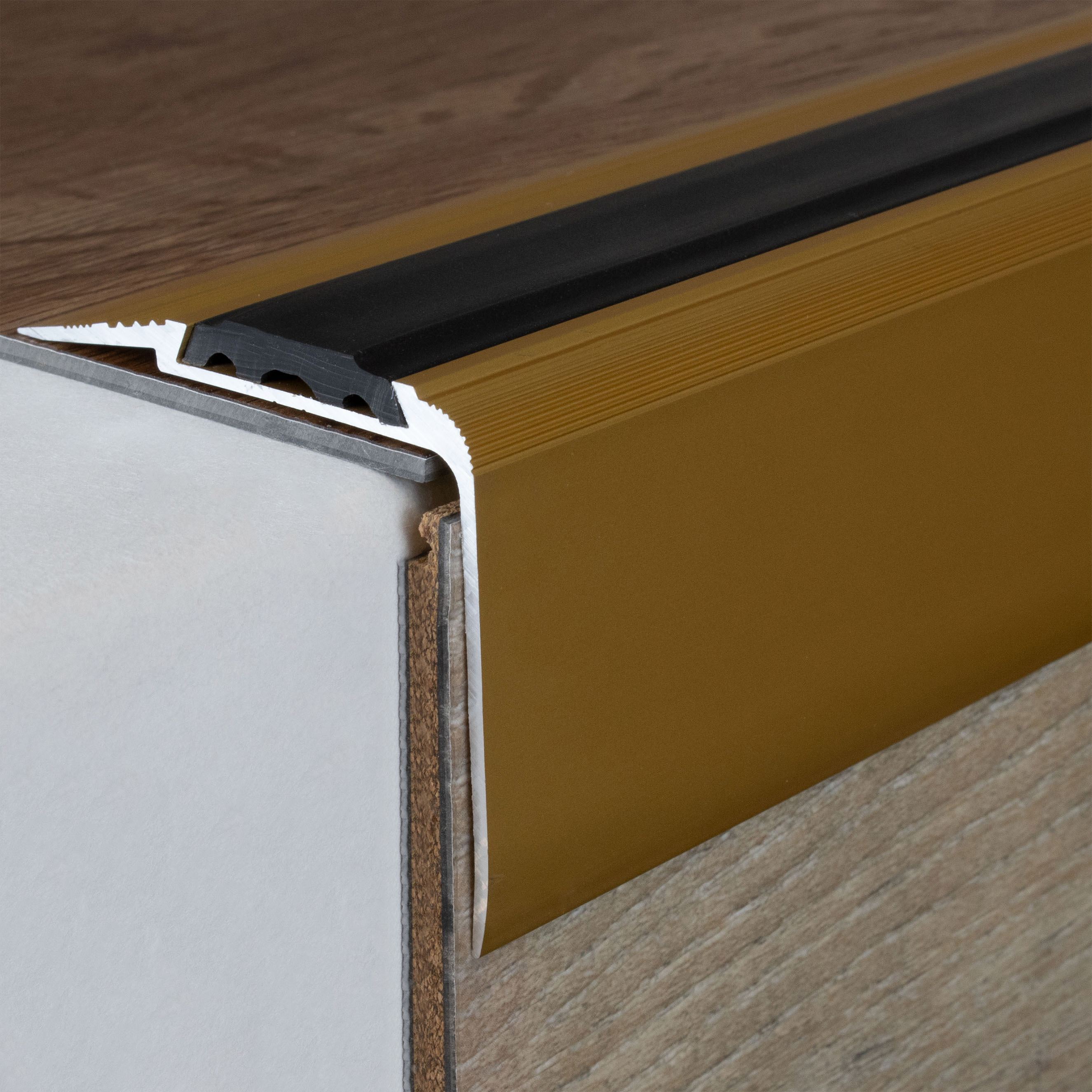 • GRÖSSE: Das Winkelprofil mit den Abmessungen 58 x 45 x 1000 mm mm und schafft einen sauberen Abschluss an der Treppenkante.