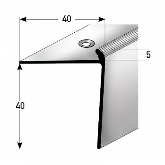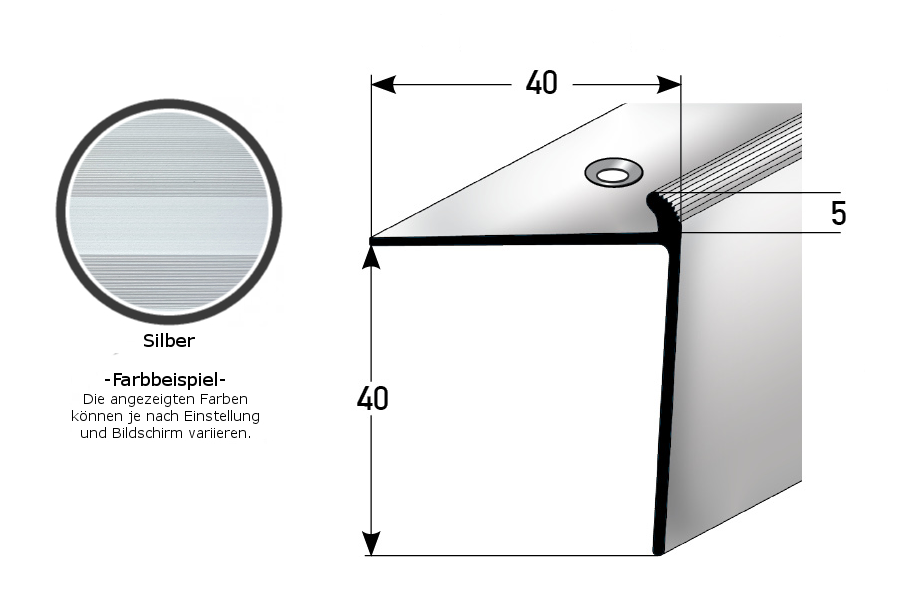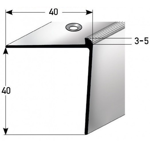 - GRÖSSE: Das Winkelprofil mit den Abmessungen 40 x 5 x 1000 mm besitzt eine Einfasshöhe von 5 mm und schafft einen sauberen Abschluss an der Treppenkante.
