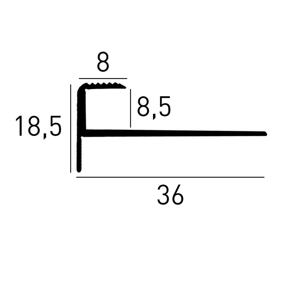- GRÖSSE: Das Winkelprofil mit den Abmessungen 36 x 18.5 x 1000 x 8.5 mm schafft einen sauberen Abschluss an der Treppenkante. Das Treppenprofil hat eine Einfassung von 8.5 mm