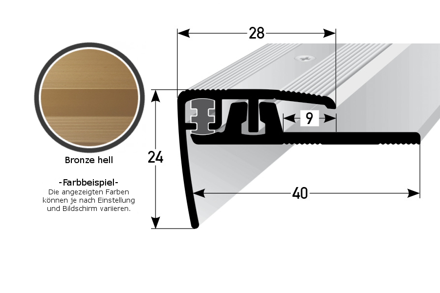 - GRÖSSE: Das Winkelprofil mit den Abmessungen 40 x 4 - 7 x 900 mm besitzt eine Einfasshöhe von 4 - 7 mm und schafft einen sauberen Abschluss an der Treppenkante.
