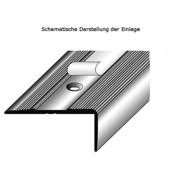 Hinweis zum Lieferumfang: Die Treppenkanten Profile werden OHNE Einlage geliefert. Die passenden PVC Einlagen kannst Du unter dem Reiter "Zubehör" dazu bestellen.