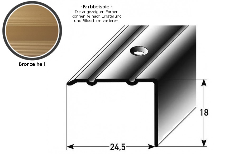 - GRÖSSE: Das Winkelprofil mit den Abmessungen 24.5 x 18 x 900 mm schafft einen sauberen Abschluss an der Treppenkante.