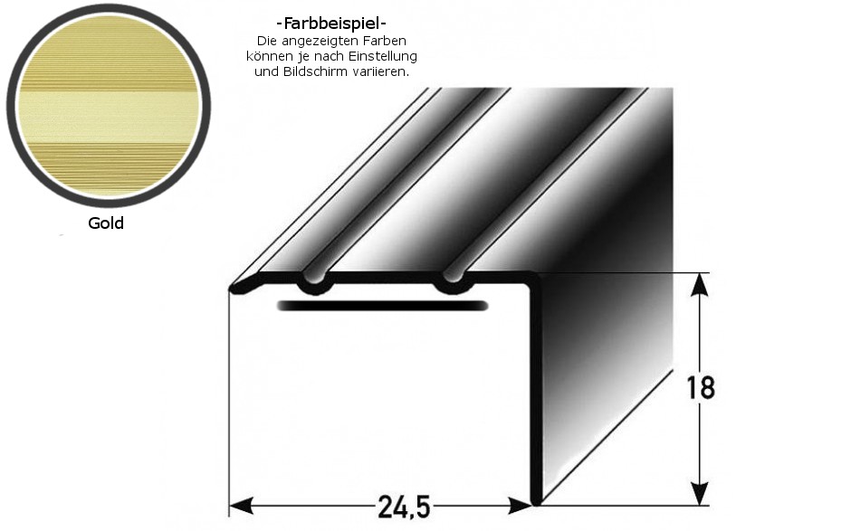 - GRÖSSE: Das Winkelprofil mit den Abmessungen 24.5 x 18 x 1000 mm schafft einen sauberen Abschluss an der Treppenkante.