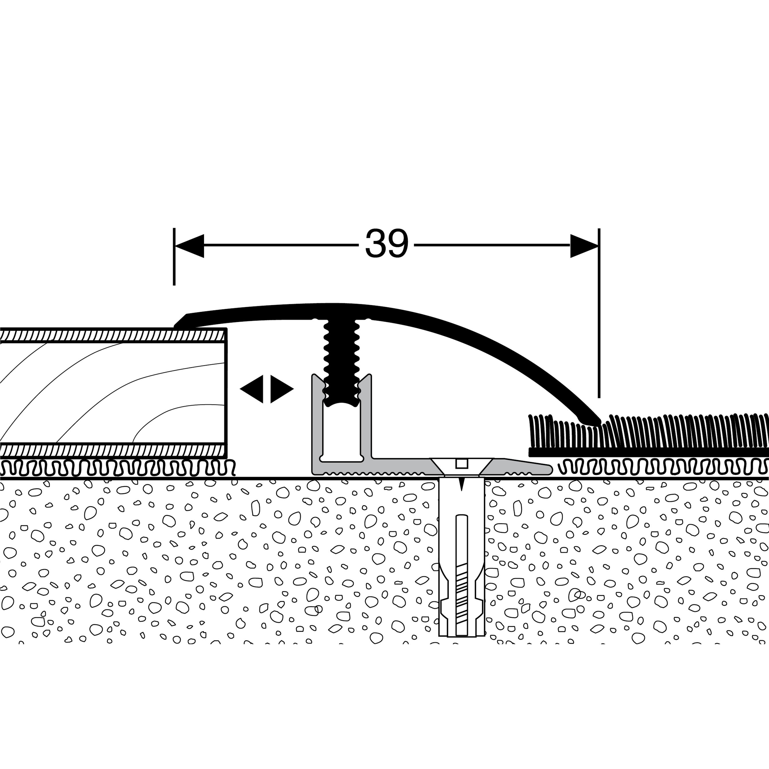 - GRÖSSE: Das Übergangsprofil mit den Abmessungen 39 x 7 - 12 x 1000 mm besitzt eine Einfasshöhe von 7 - 12 mm und schafft einen sauberen Übergang zwischen verschiedenen Bodenbelägen.