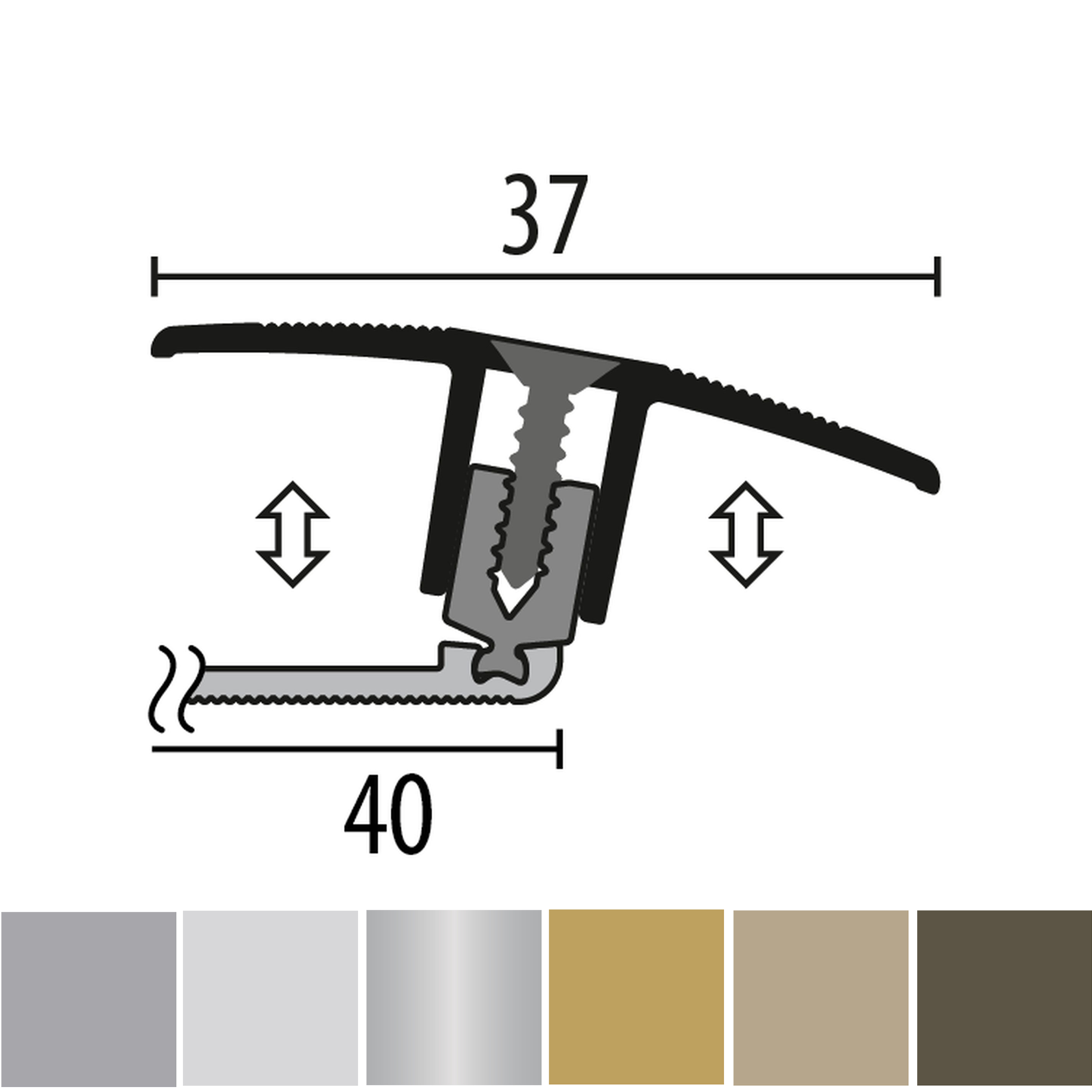 - GRÖSSE: Das Übergangsprofil mit den Abmessungen 37 x 7-17 x 900 x 7 - 17 mm schafft einen sauberen Übergang zwischen verschiedenen Bodenbelägen. Das Profil hat eine Einfassung von 7 - 17 mm.