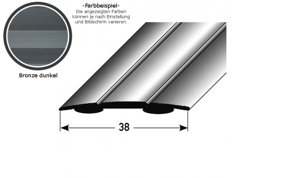 - GRÖSSE: Das Übergangsprofil mit den Abmessungen 38 x 2.5 x 900 x 1.8 mm schafft einen sauberen Übergang zwischen verschiedenen Bodenbelägen. Das Profil hat eine Materialstärke von 1.8 mm.