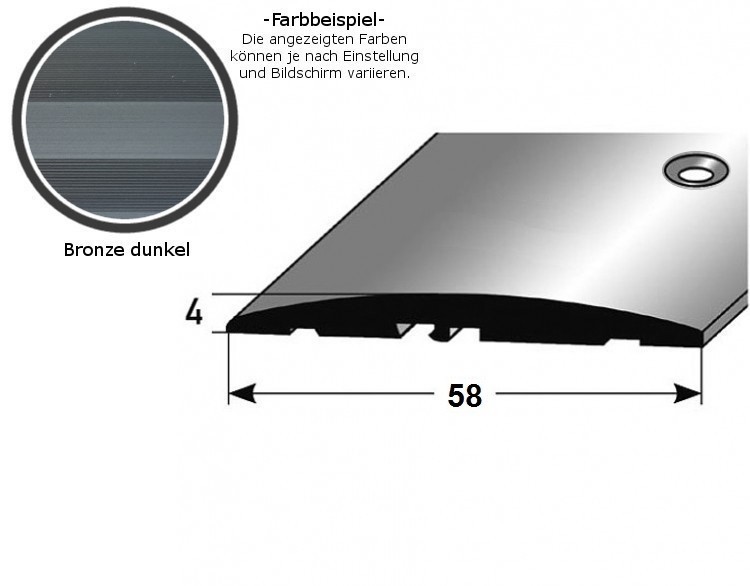 - GRÖSSE: Das Übergangsprofil mit den Abmessungen 4 x 58 x 2700 mm hat eine Materialstärke von 4 mm und schafft einen sauberen Übergang zwischen verschiedenen Bodenbelägen.