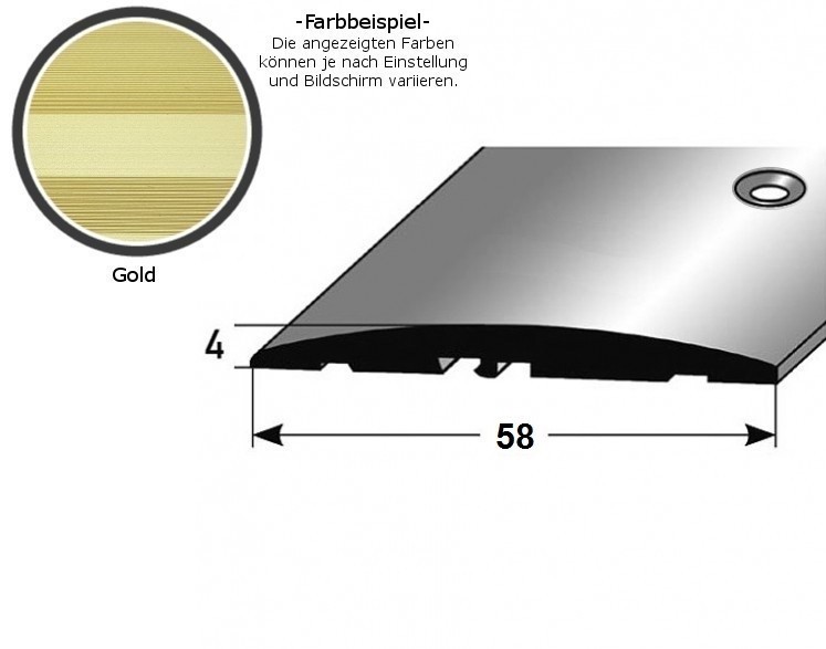 - GRÖSSE: Das Übergangsprofil mit den Abmessungen 4 x 58 x 1000 mm hat eine Materialstärke von 4 mm und schafft einen sauberen Übergang zwischen verschiedenen Bodenbelägen.