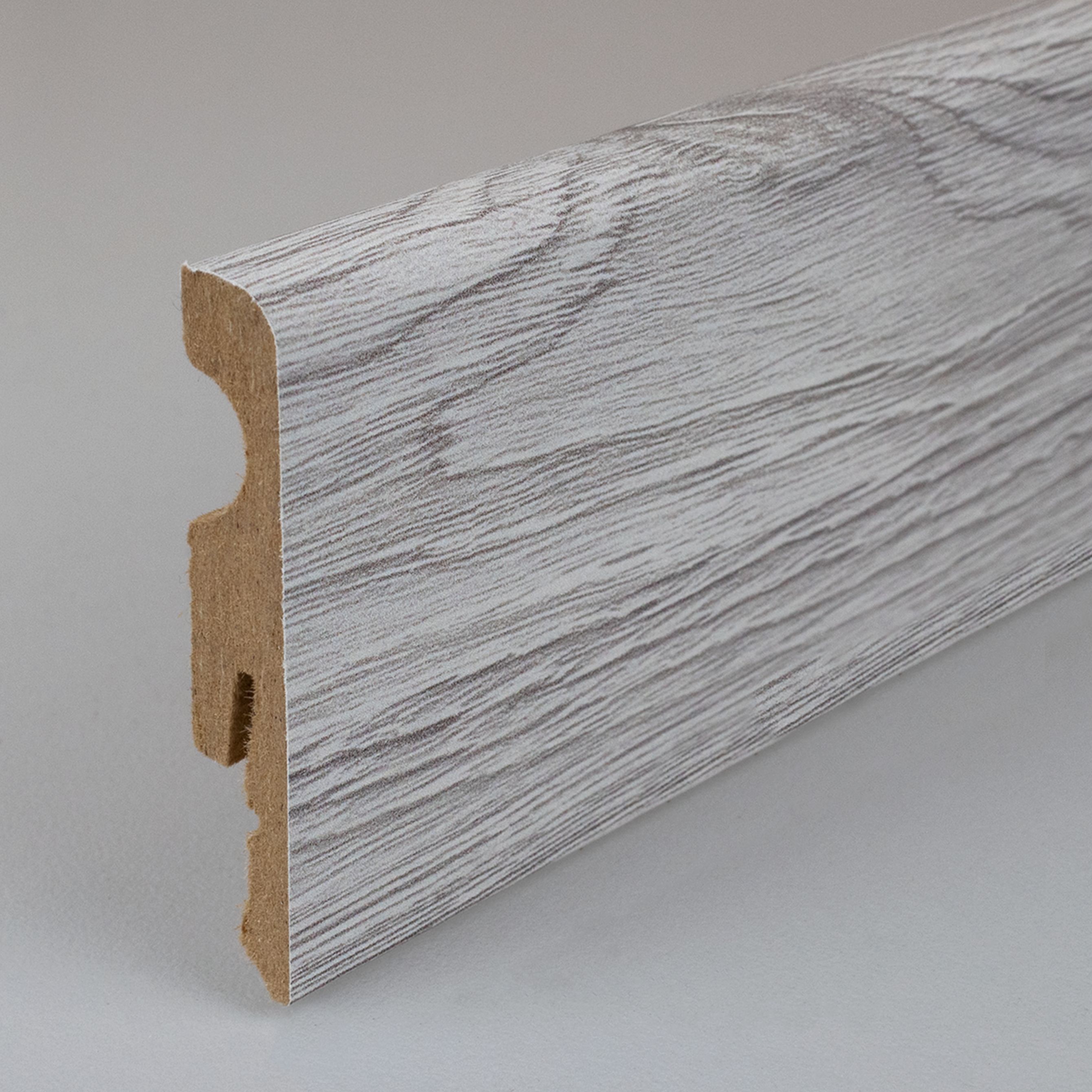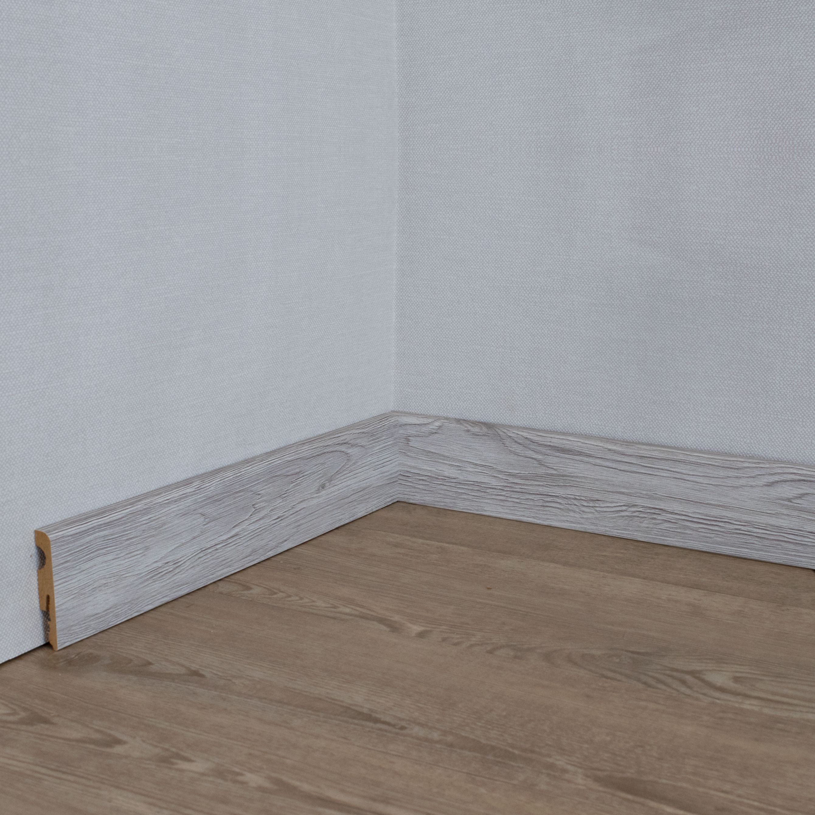 PROVISTON | Weißeiche | 10 x 73 x 2400 mm | Grau foliert | Sockelleiste MDF | Fußleiste abgerundet