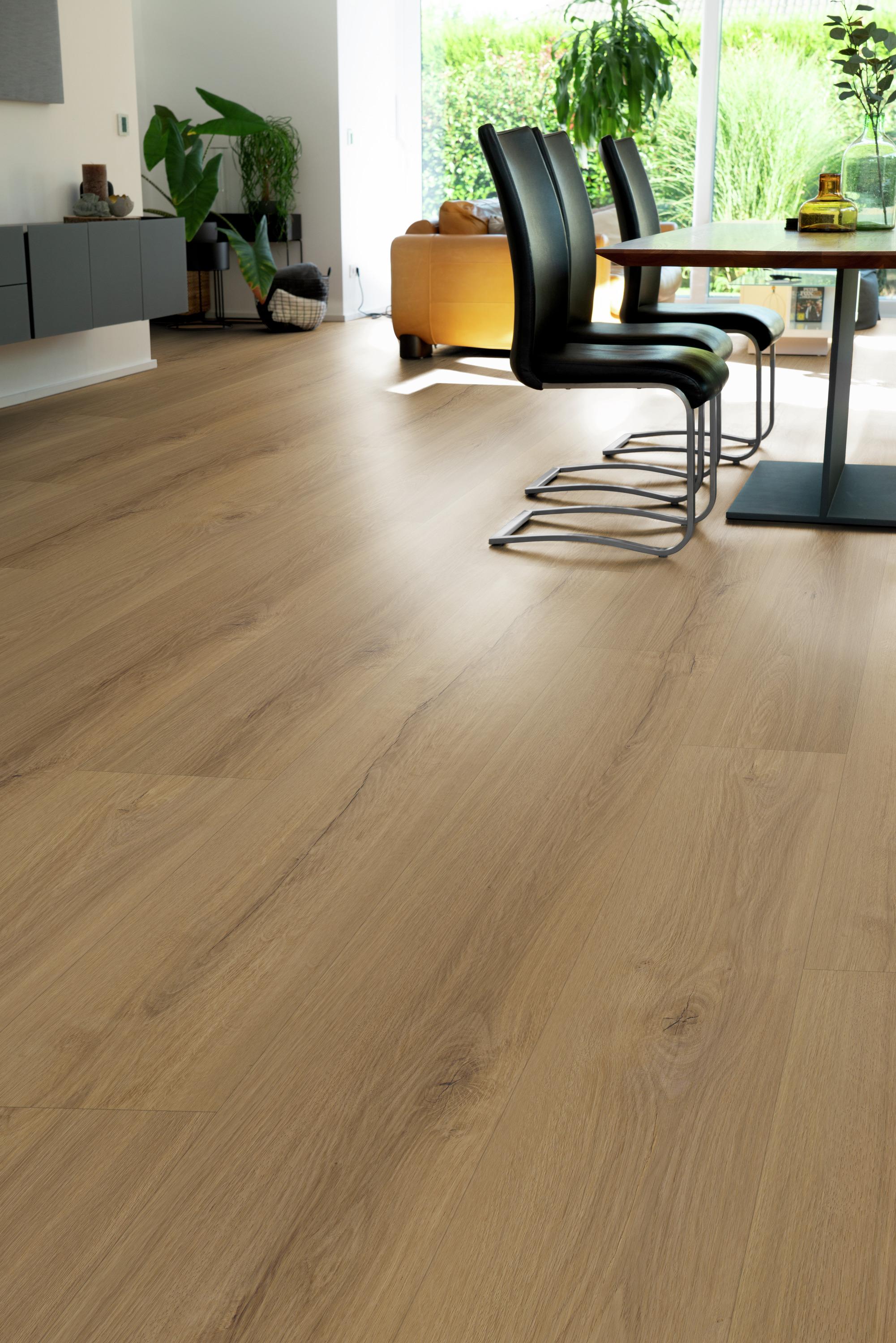 - OPTIK: Dank der Holzsynchronprägung ist die Optik kaum von der eines Echtholz-Fußbodens zu unterscheiden.
