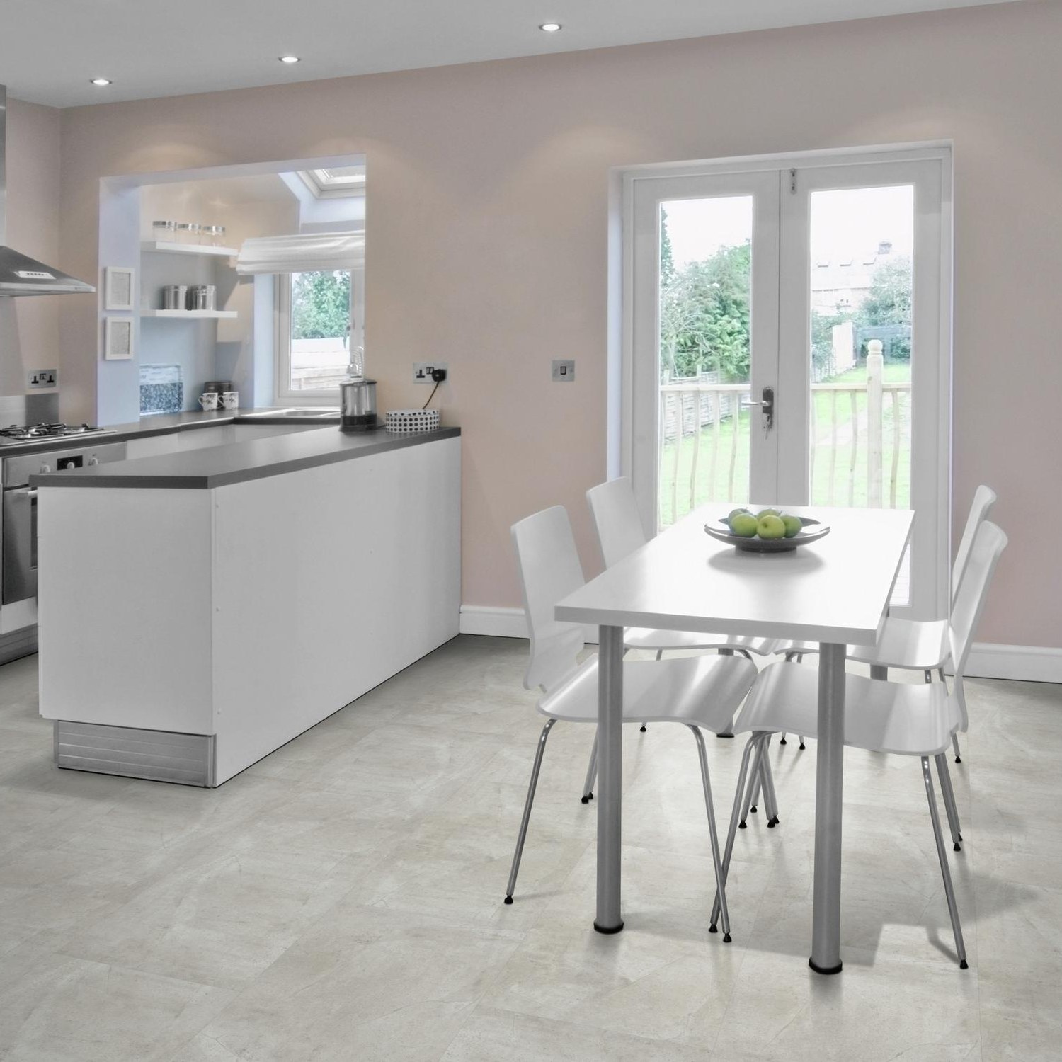 Der Rigid Vinylboden mit authentischer Steinstruktur schafft ein modernes Ambiente in Deinen Räumen.