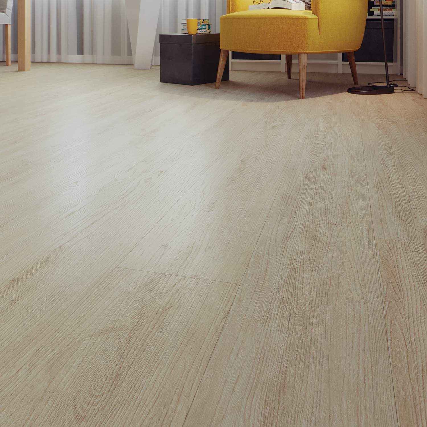 - FUGENBILDUNG OHNE FASE: Die Fugenbildung ohne Fase verleiht dem Boden eine glatte Oberfläche und sorgt für ein zeitloses modernes Erscheinungsbild