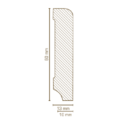 - GRÖSSE: Die Fußleiste mit den Abmessungen 13 x 60 x 2500 mm schafft einen sauberen Übergang zwischen Boden und Wand.