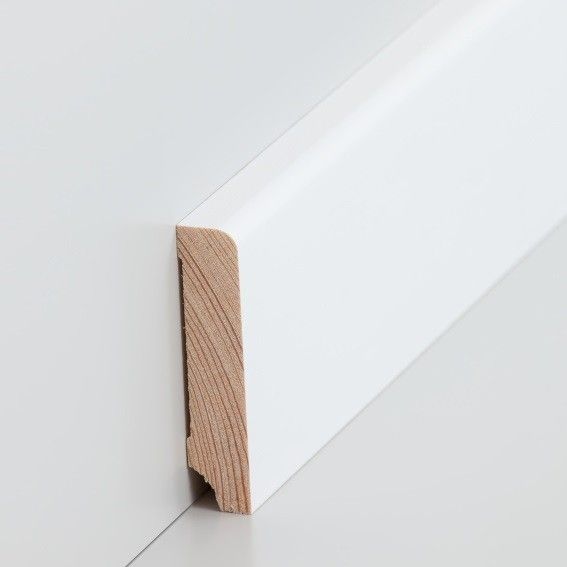 Sockelleiste 13 x 60 mm Massivholz Kiefer Deckend weiß lackiert by PROVISTON