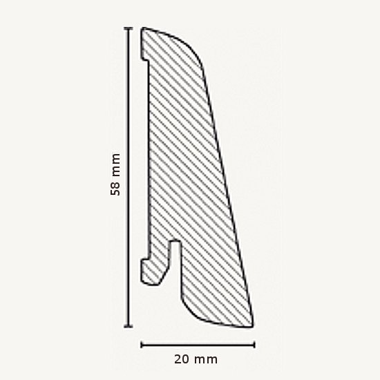 - GRÖSSE: Die Fußleiste mit den Abmessungen 20 x 58 x 2500 mm schafft einen sauberen Übergang zwischen Boden und Wand.