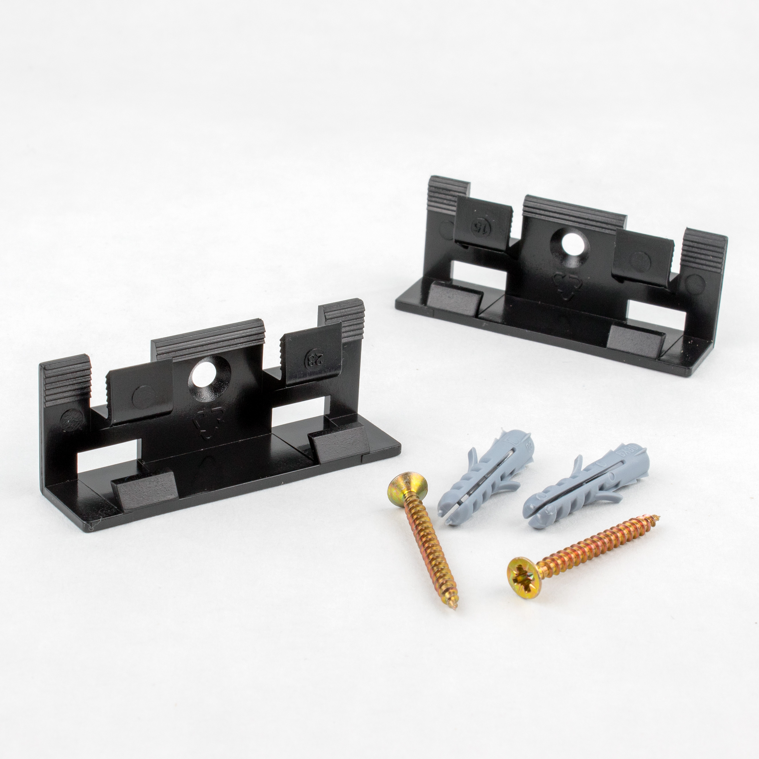 - Clipsen: Einige Leisten lassen sich mit passenden Montage-Clips befestigen. Je nach Wandbeschaffenheit werden 2 - 3 Montageclips je Meter Wandfläche benötigt.