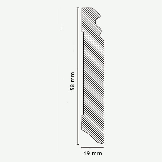 - GRÖSSE: Die Fußleiste mit den Abmessungen 19 x 58 x 2500 mm schafft einen sauberen Übergang zwischen Boden und Wand.