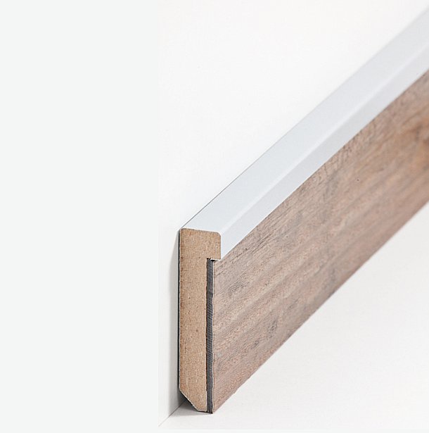 Diese Leiste besticht vor allem durch das moderne und schlicht gestaltete Profil. Das schnörkellose klare Design ist zeitlos und sorgt in für ein stimmiges Raumbild. Dank des festen strapazierfähigen MDF-Kerns ist die Fußleiste besonders langlebig wodurch Sie umso länger Freude daran haben werden.