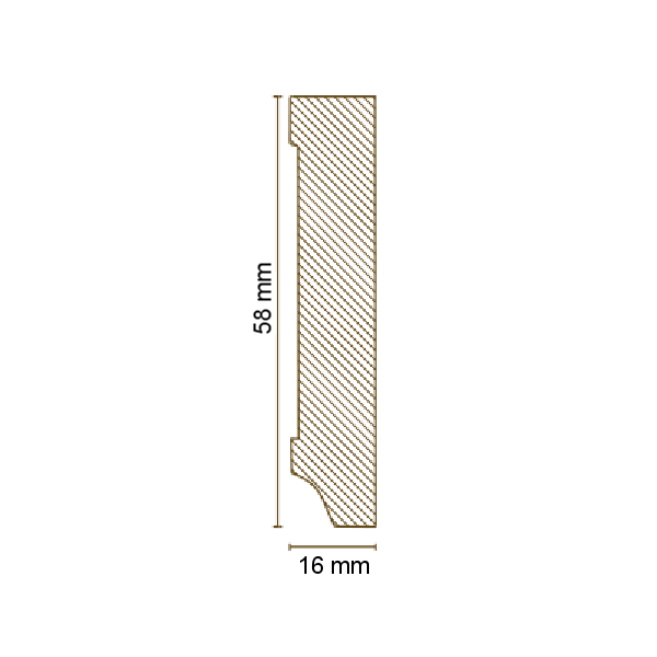 - GRÖSSE: Die Fußleiste mit den Abmessungen 16 x 58 x 2500 mm schafft einen sauberen Übergang zwischen Boden und Wand.