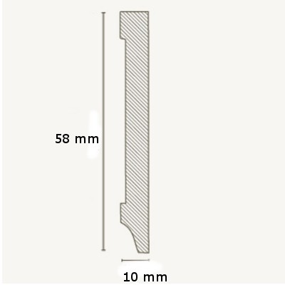 • GRÖSSE: Die Fußleiste mit den Abmessungen 10 x 58 x 2500 mm schafft einen sauberen Übergang zwischen Boden und Wand.