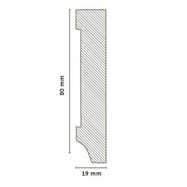- GRÖSSE: Die Fußleiste mit den Abmessungen 19 x 80 x 2500 mm schafft einen sauberen Übergang zwischen Boden und Wand.