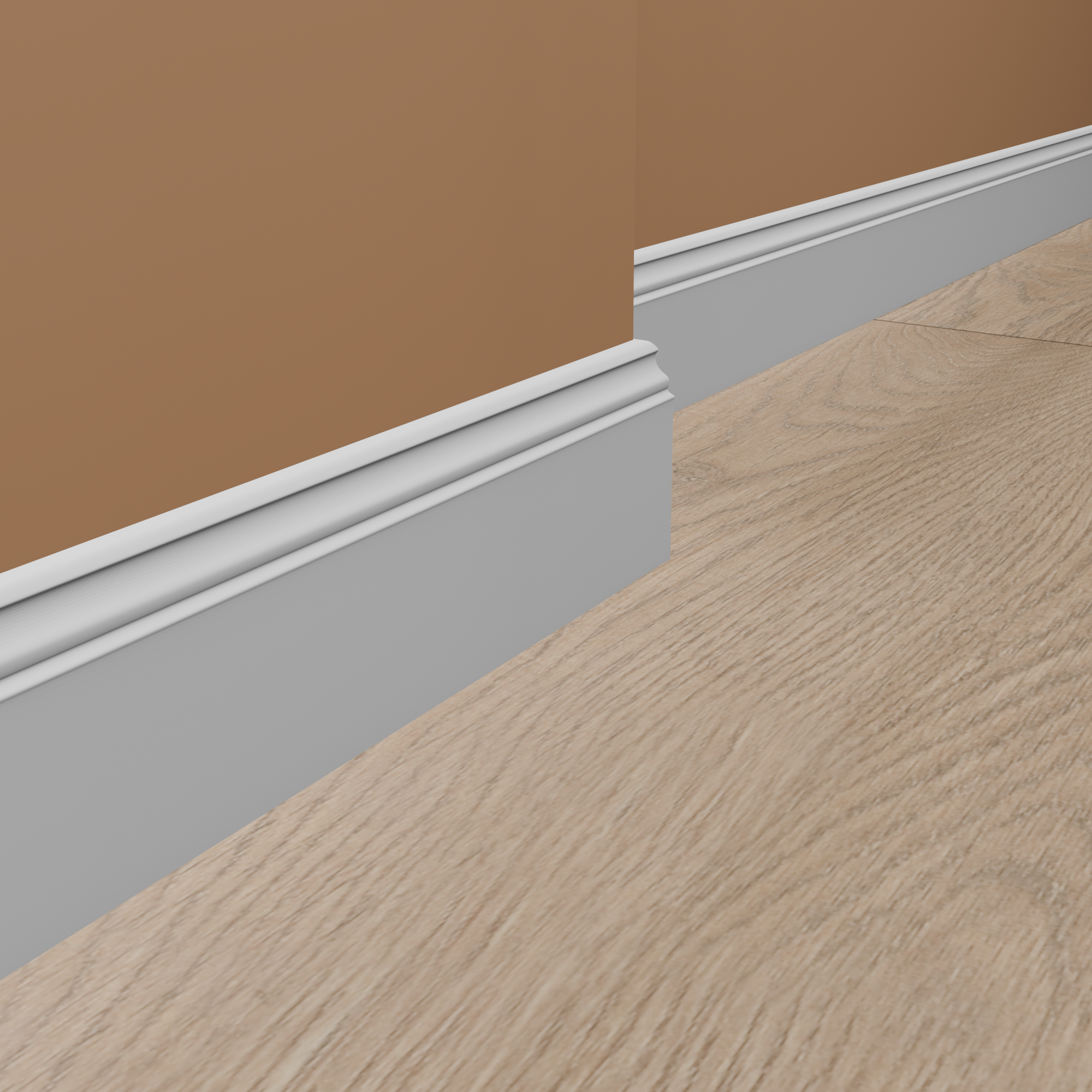 - ANWENDUNGSBEREICH: Die Sockelleiste eignet sich ideal für den Einsatz in nahezu allen Wohnräumen. Sie passt zu vielen Bodenbelägen, einschließlich Holz, Fliesen, Vinyl, Laminat, Teppich und mehr. Hinweis: Die Leiste ist nicht für Feuchträume geeignet.