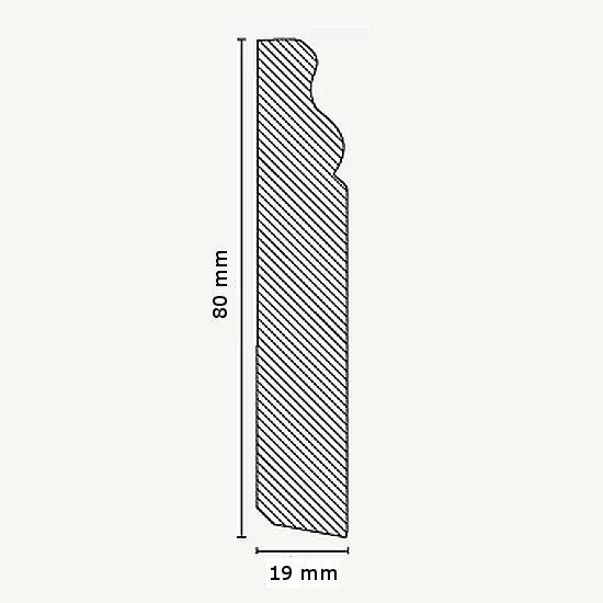 - GRÖSSE: Die Fußleiste mit den Abmessungen 19 x 80 x 2500 mm schafft einen sauberen Übergang zwischen Boden und Wand.
