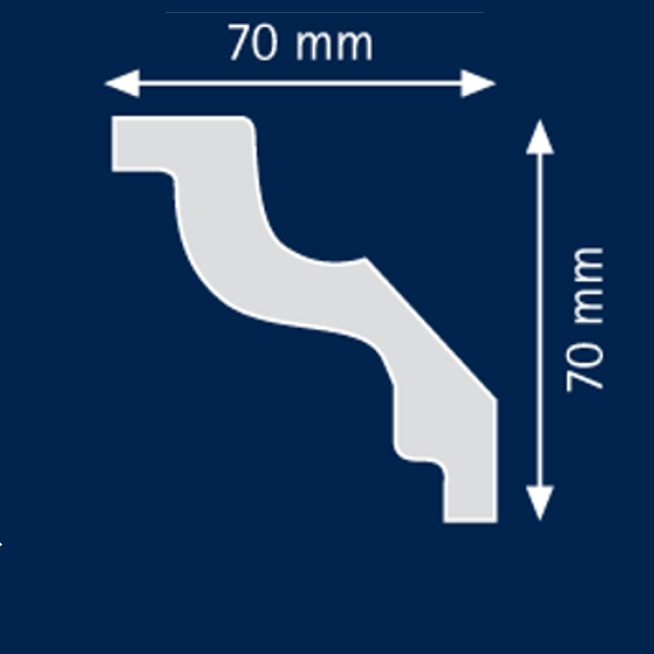 Bei diesem Artikel handelt es sich um die Stuckleiste Big Pine des Herstellers Wiesemann aus Polystyrol. Es ist eine 70 x 70 mm messende Styroporstuckleiste (Polstyrol), die im modernen Stil gestalte wurde. Die aus extrudiertem Polystyrol (Styropor) gefertigte Stuckleiste ist trotz des geringen Gewichts hart und relativ druckfest. Die Eckleiste überzeugt mit Ihrer passgenauen Kontur und ihrer glatten Oberfläche.