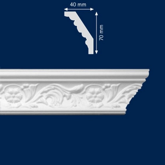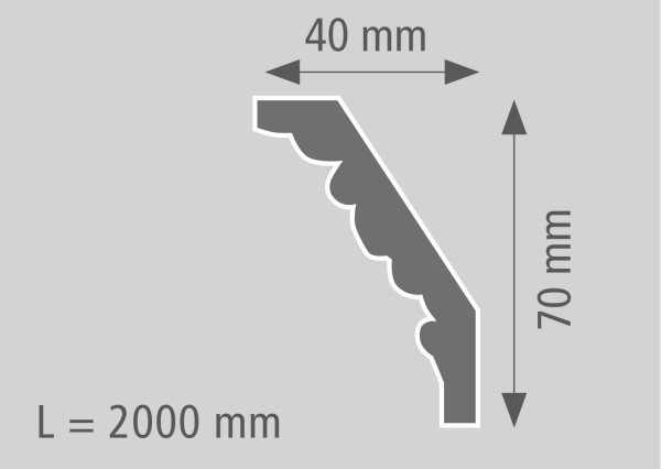 Bei diesem Artikel handelt es sich um die Stuckleiste Bluehill des Herstellers Wiesemann aus Polystyrol. Es ist eine 40 x 70 mm messende Styroporstuckleiste (Polstyrol), die im modernen Stil gestalte wurde. Die aus geschäumtem Polystyrol (Styropor) gefertigte Stuckleisteiste ist perfekt zur harmonischen Gestaltung von Wohn- und Gewerberäumen.