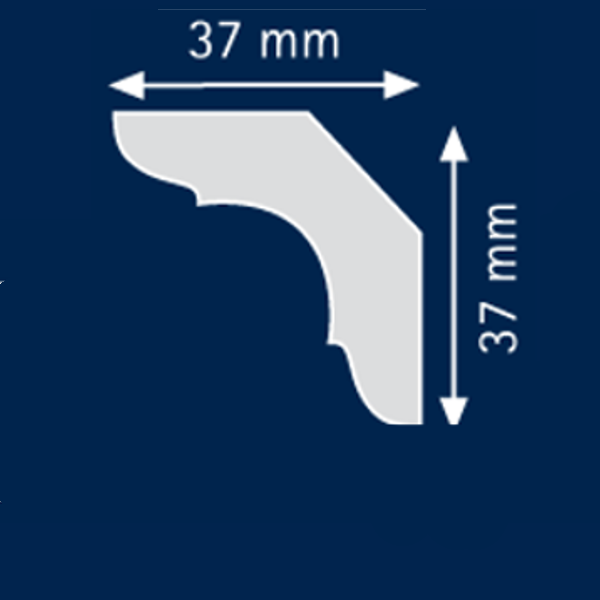 Bei diesem Artikel handelt es sich um die Stuckleiste Omaha des Herstellers Wiesemann aus Polystyrol. Es ist eine 37 x 37 mm messende Styroporstuckleiste (Polstyrol), die im modernen Stil gestalte wurde. Die aus extrudiertem Polystyrol (Styropor) gefertigte Stuckleiste ist trotz des geringen Gewichts hart und relativ druckfest. Die Eckleiste überzeugt mit Ihrer passgenauen Kontur und ihrer glatten Oberfläche.