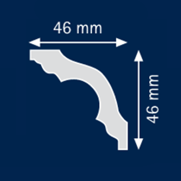 Bei diesem Artikel handelt es sich um die Stuckleiste St. Cloud des Herstellers Wiesemann aus Polystyrol. Es ist eine 46 x 46 mm messende Styroporstuckleiste (Polstyrol), die im modernen Stil gestalte wurde. Die aus extrudiertem Polystyrol (Styropor) gefertigte Stuckleiste ist trotz des geringen Gewichts hart und relativ druckfest. Die Eckleiste überzeugt mit Ihrer passgenauen Kontur und ihrer glatten Oberfläche.