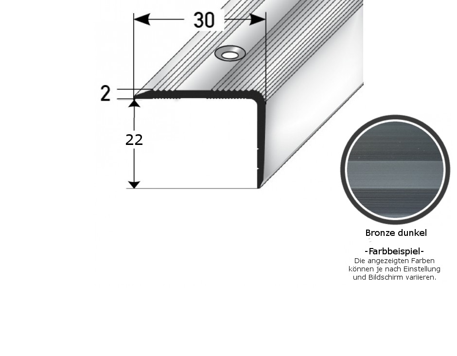 - GRÖSSE: Das Winkelprofil mit den Abmessungen 22 x 30 x 2700 mm hat eine Materialstärke von 2 mm und schafft einen sauberen Abschluss an der Treppenkante.