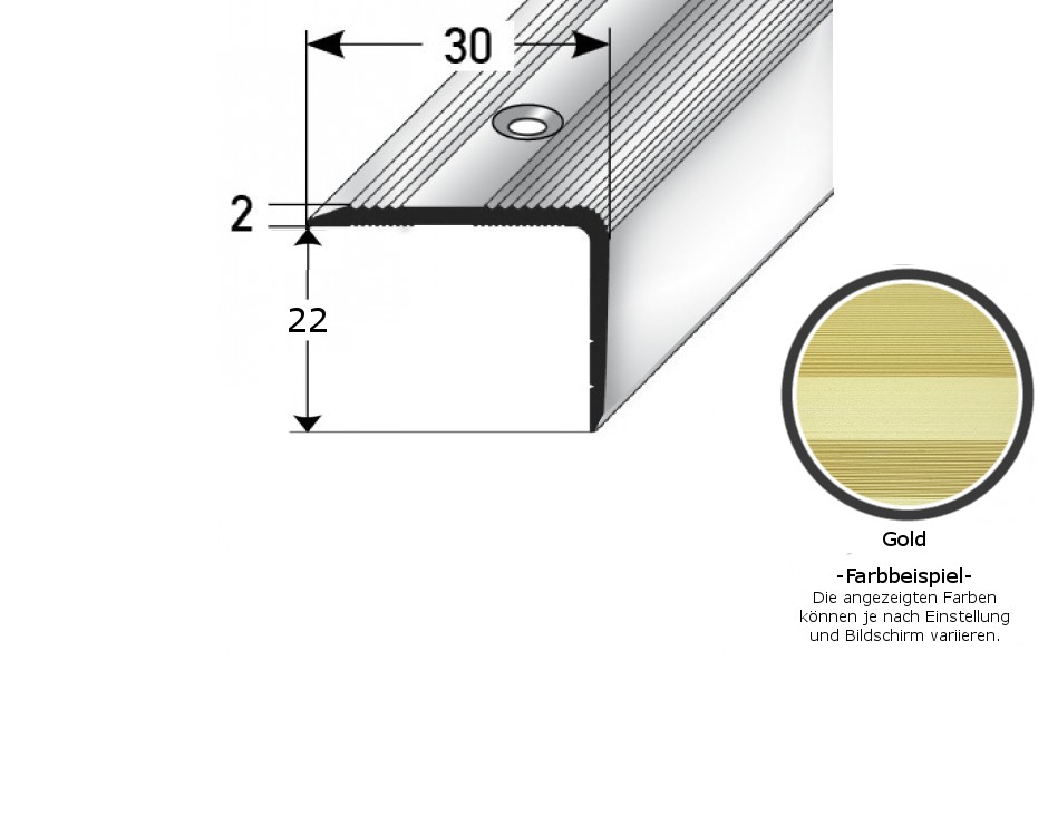 - GRÖSSE: Das Winkelprofil mit den Abmessungen 22 x 30 x 1000 mm hat eine Materialstärke von 2 mm und schafft einen sauberen Abschluss an der Treppenkante.