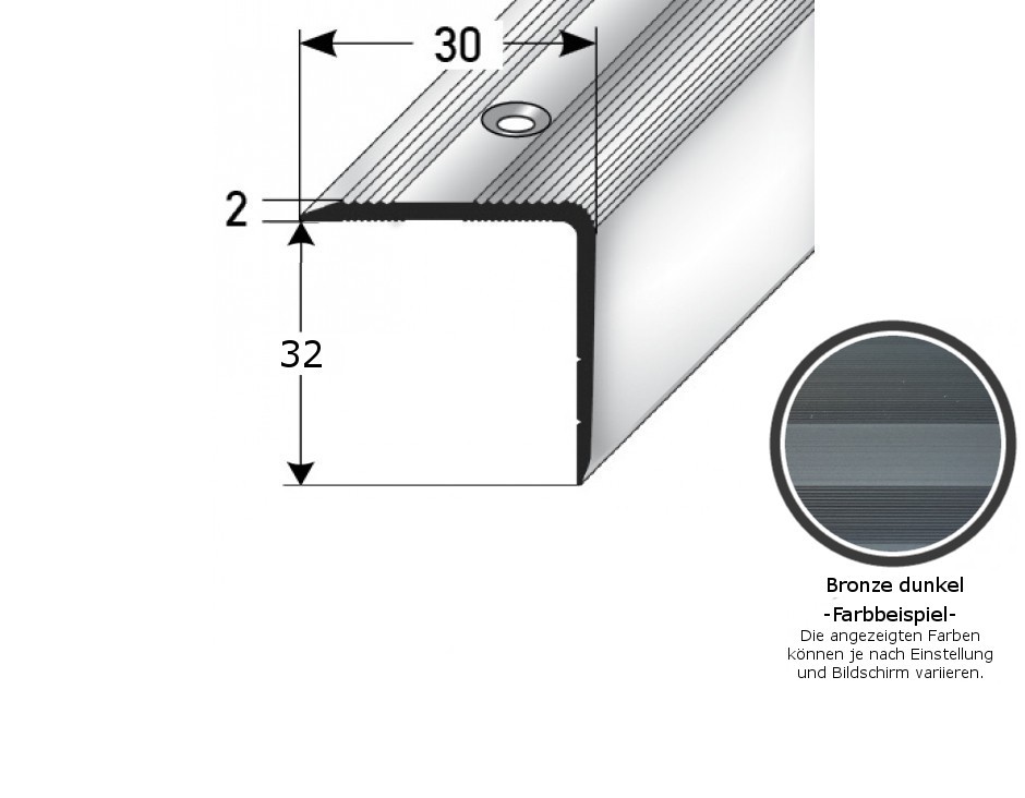 - GRÖSSE: Das Winkelprofil mit den Abmessungen 32 x 30 x 1000 mm hat eine Materialstärke von 2 mm und schafft einen sauberen Abschluss an der Treppenkante.