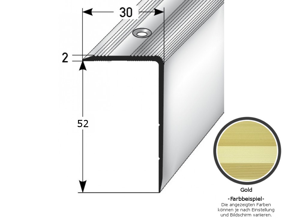 - GRÖSSE: Das Winkelprofil mit den Abmessungen 52 x 30 x 1000 mm hat eine Materialstärke von 2 mm und schafft einen sauberen Abschluss an der Treppenkante.
