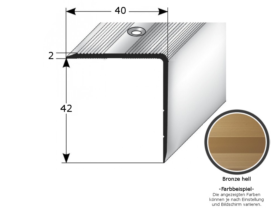 - GRÖSSE: Das Winkelprofil mit den Abmessungen 44 x 40 x 1000 mm hat eine Materialstärke von 2 mm und schafft einen sauberen Abschluss an der Treppenkante.