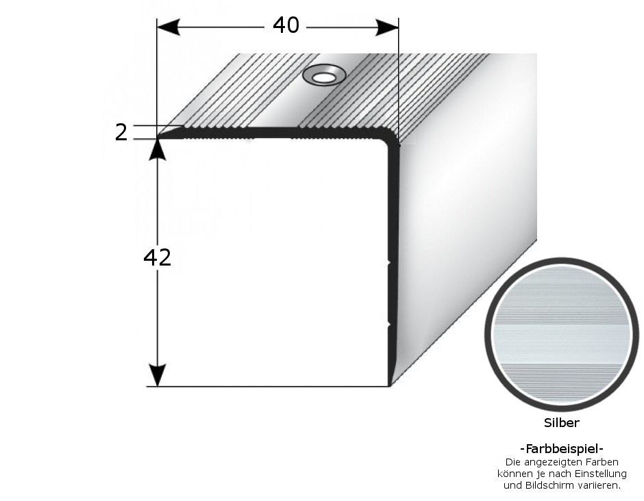 - GRÖSSE: Das Winkelprofil mit den Abmessungen 44 x 40 x 1000 mm hat eine Materialstärke von 2 mm und schafft einen sauberen Abschluss an der Treppenkante.
