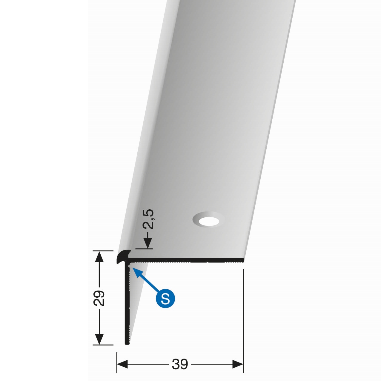 Treppenkantenprofil 29 x 39 mm Aluminium Runde Treppen Ecke Rechts 90 Grad Glatt Gebohrt Küberit