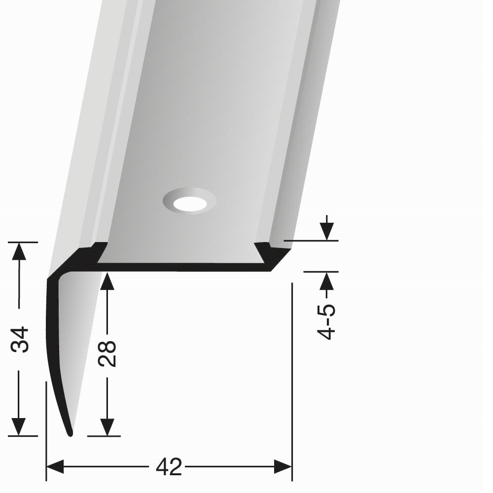 Treppenkantenprofil 34 x 42 x 2500 mm Aluminium Winkelprofil Versenkt Gebohrt versch. Farben Küberit