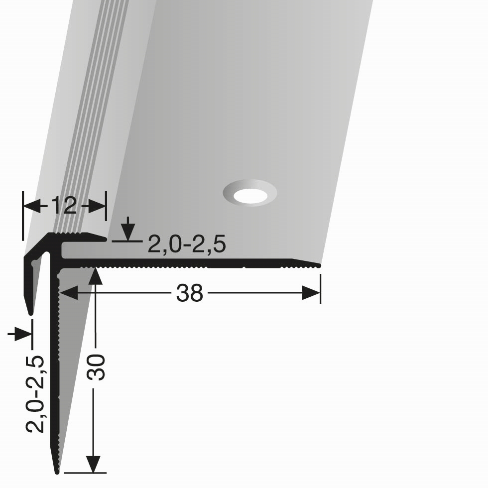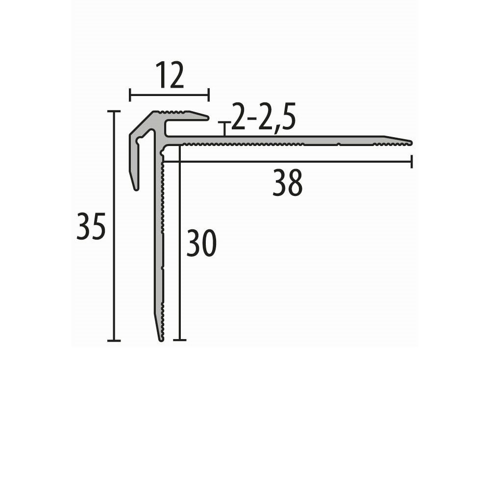 Treppenprofil 30 x 38 x 2500 mm Aluminium Treppenkantenprofil Winkelprofil Geriffelt Küberit
