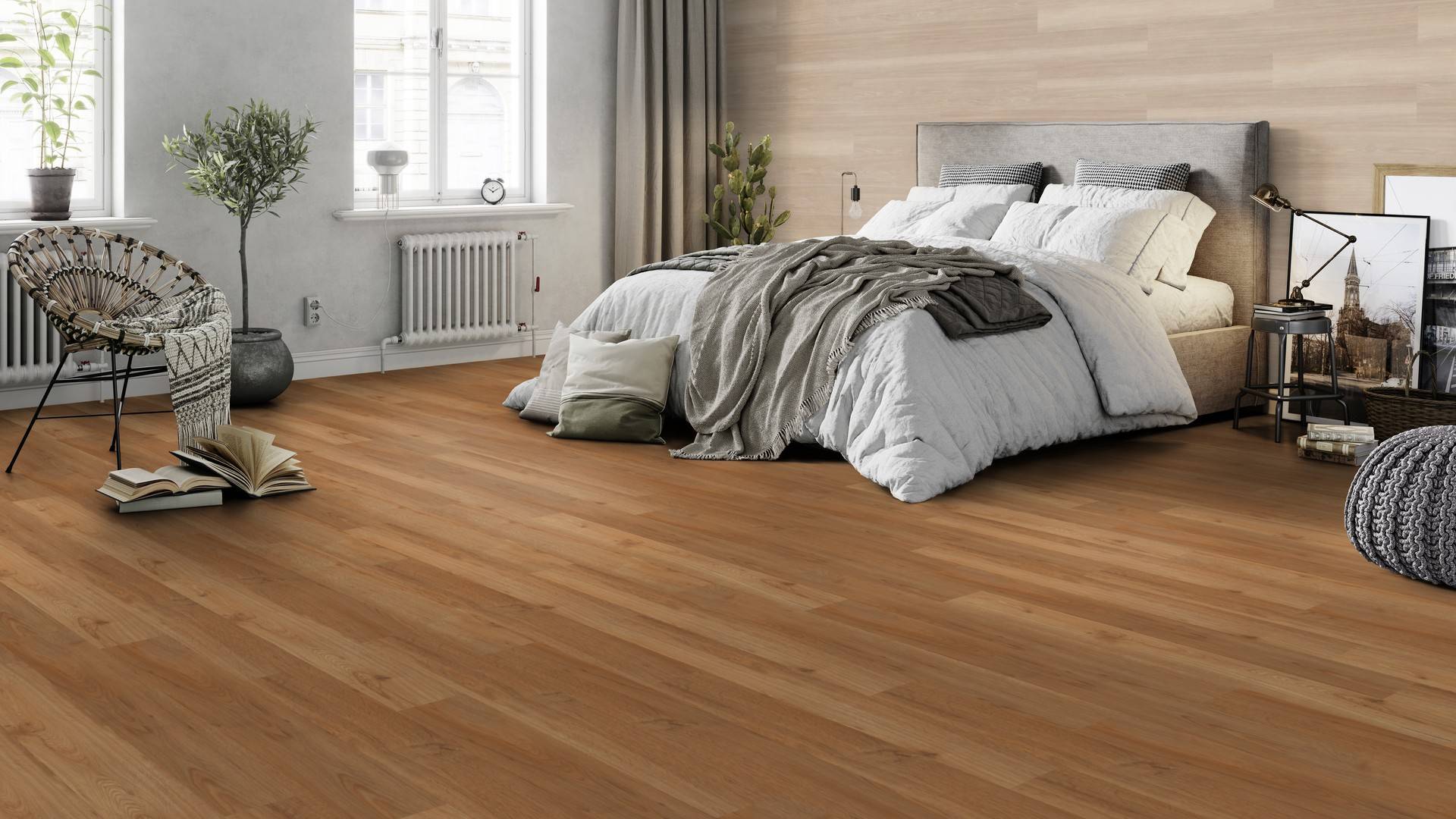 Der Bodenbelag inRich Valley Oak überzeugt durch seine perfekte Imitation natürlicher Holzböden. Die feine Maserung verleiht dem Boden eine authentische und hochwertige Ausstrahlung die an Böden aus Eicheerinnert. Dank der vielseitigen Farbgebung passt er zu jedem Einrichtungsstil und schafft eine harmonische Atmosphäre in deinem Zuhause.