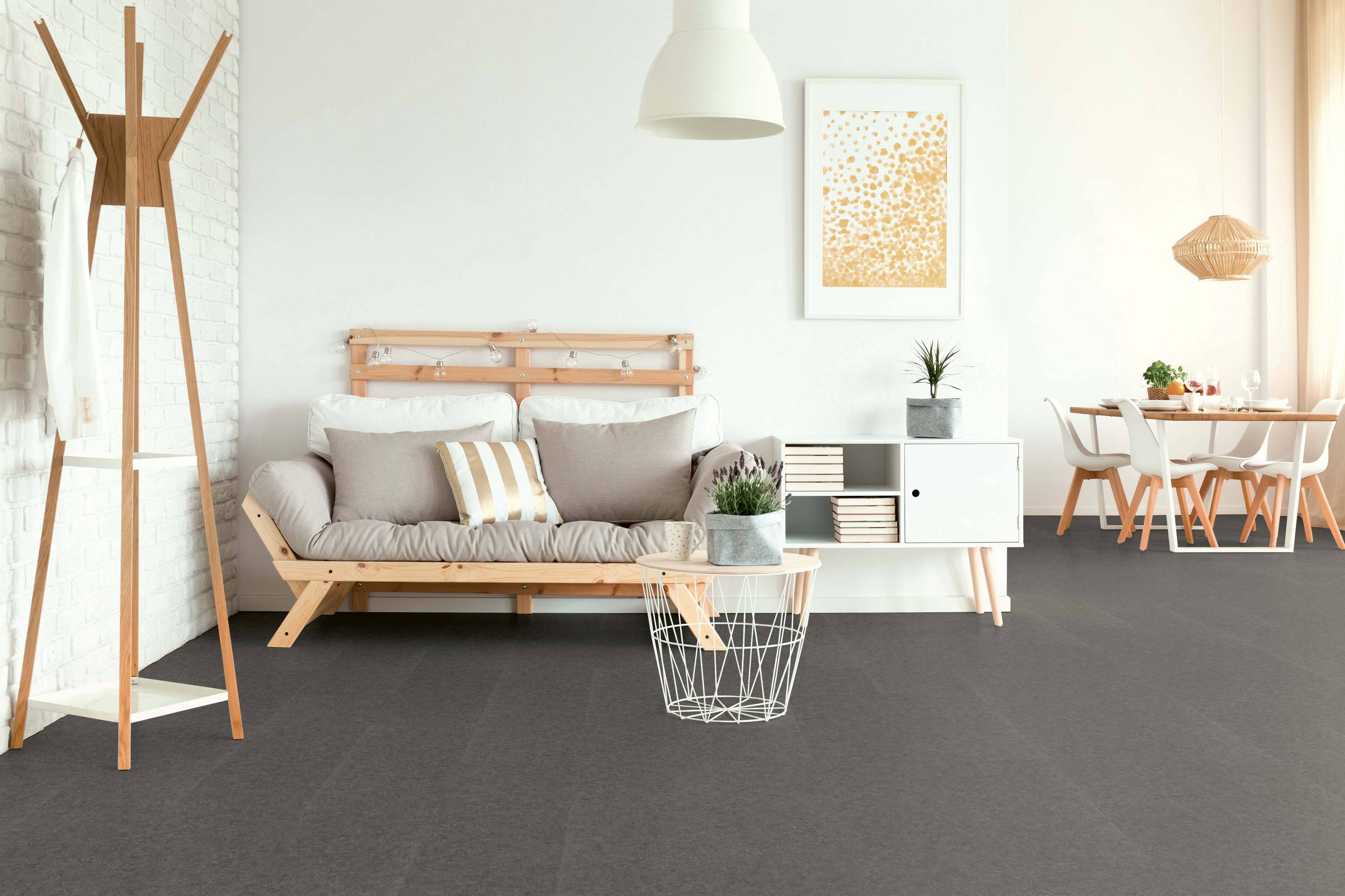Der Bodenbelag inAnthrazit Loft besticht durch seine beeindruckende Steinoptik, die an robusten Steinböden erinnert. Die natürlichen Nuancen und Strukturen verleihen dem Boden eine markante und zeitlose Ausstrahlung. Die Farbe harmoniert perfekt mit modernen und minimalistischen Einrichtungsstilen und verleiht deinem Zuhause einen stilvollen Charakter.