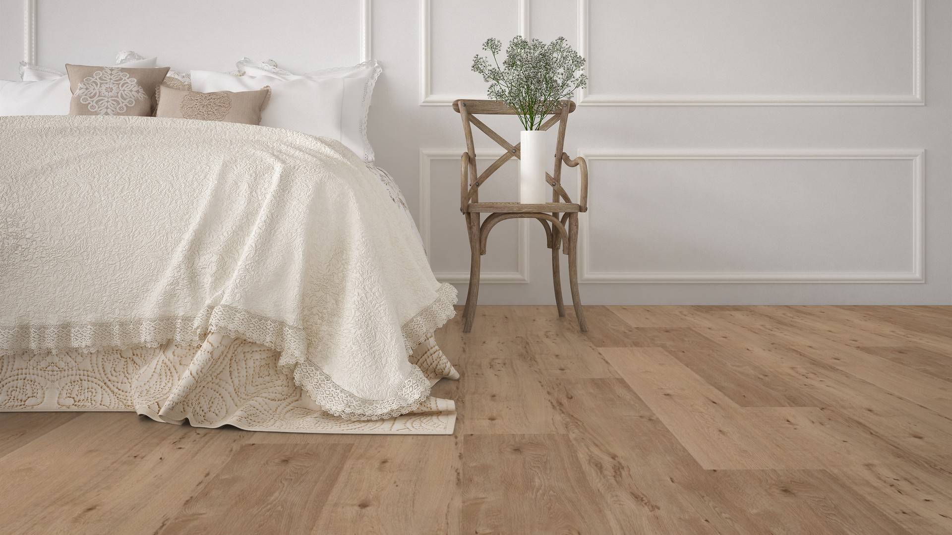 Der Bodenbelag inChalet Oak überzeugt durch seine perfekte Imitation natürlicher Holzböden. Die feine Maserung verleiht dem Boden eine authentische und hochwertige Ausstrahlung die an Böden aus Eicheerinnert. Dank der vielseitigen Farbgebung passt er zu jedem Einrichtungsstil und schafft eine harmonische Atmosphäre in deinem Zuhause.