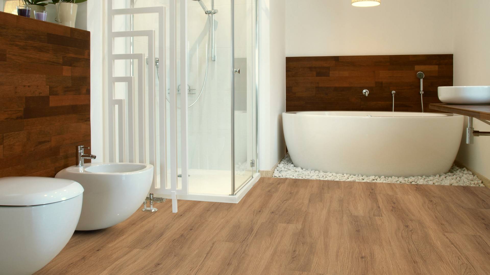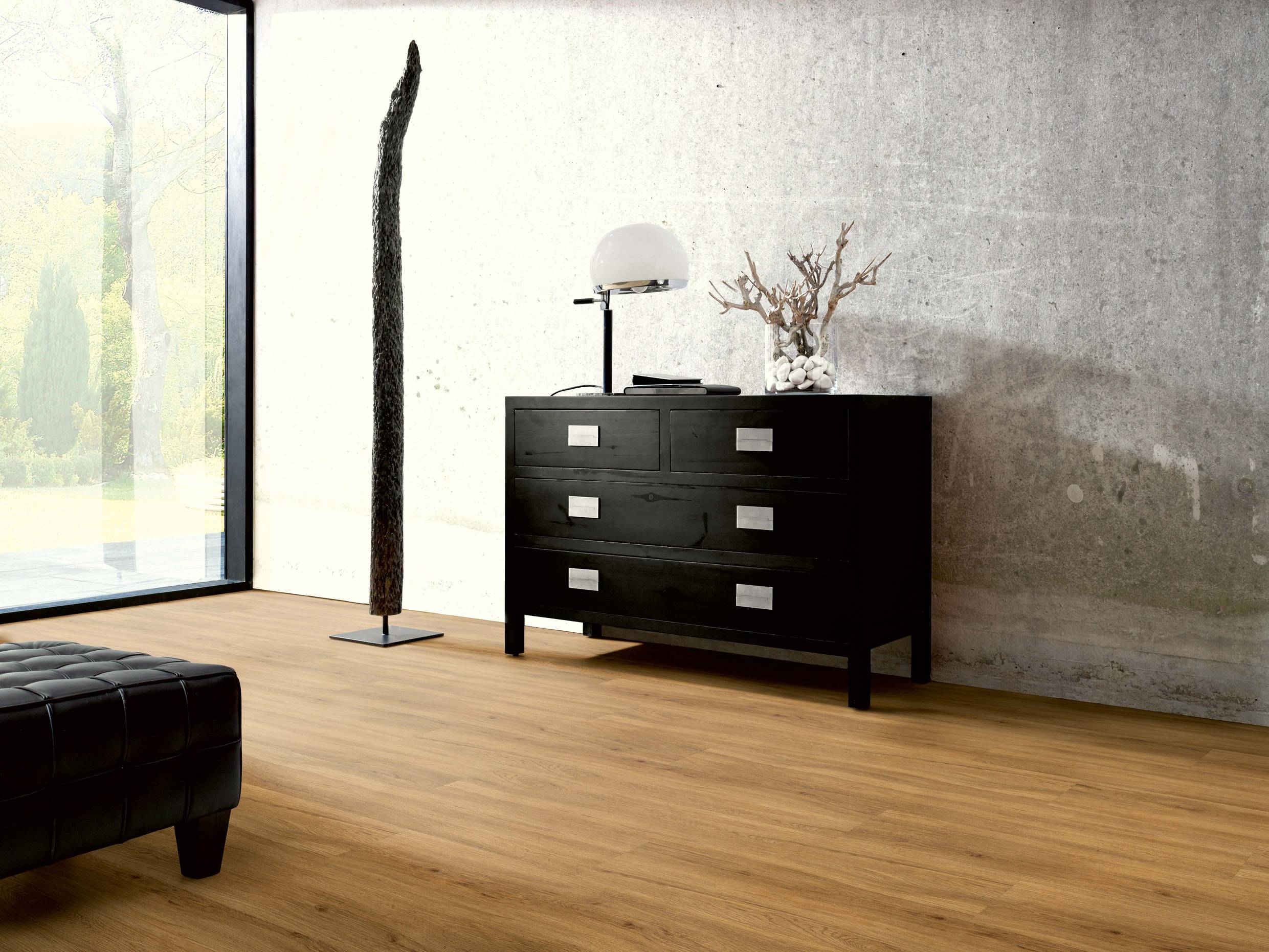 Der Bodenbelag inFinesse Oak überzeugt durch seine perfekte Imitation natürlicher Holzböden. Die feine Maserung verleiht dem Boden eine authentische und hochwertige Ausstrahlung die an Böden aus Eicheerinnert. Dank der vielseitigen Farbgebung passt er zu jedem Einrichtungsstil und schafft eine harmonische Atmosphäre in deinem Zuhause.