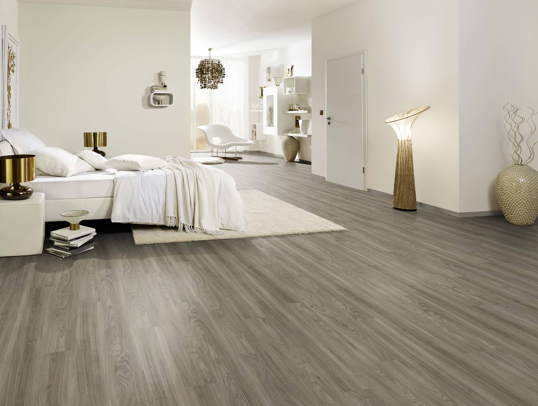 Dank seiner 100%igen Wasserfestigkeit ist dieser Bodenbelag auch perfekt für Feuchträume wie das Badezimmer geeignet. Die Verlegung erfordert einen gespachtelten Untergrund, auf den die einzelnen Planken mit einem Designbelagskleber sicher verklebt werden. Die Kollektion bietet Planken in unterschiedlichen Größen und Designs, darunter Fliesen- und Dielenformate sowie vielfältige Stein- und Holzoptiken. Wählen Sie nach Ihrem persönlichen Geschmack und den Anforderungen des Raumes.