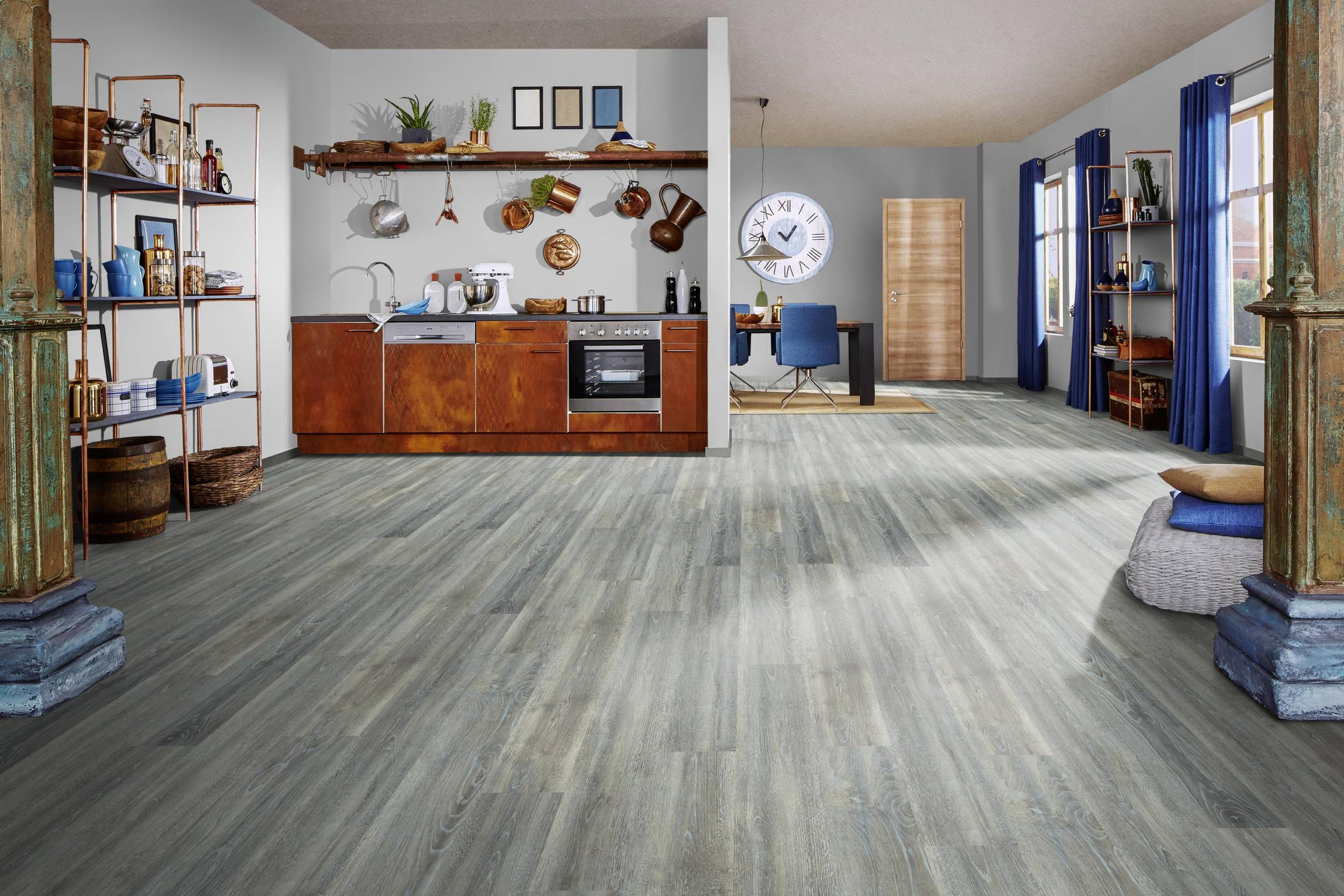 Dank seiner 100%igen Wasserfestigkeit ist dieser Bodenbelag auch perfekt für Feuchträume wie das Badezimmer geeignet. Die Verlegung erfordert einen gespachtelten Untergrund, auf den die einzelnen Planken mit einem Designbelagskleber sicher verklebt werden. Die Kollektion bietet Planken in unterschiedlichen Größen und Designs, darunter Fliesen- und Dielenformate sowie vielfältige Stein- und Holzoptiken. Wählen Sie nach Ihrem persönlichen Geschmack und den Anforderungen des Raumes.