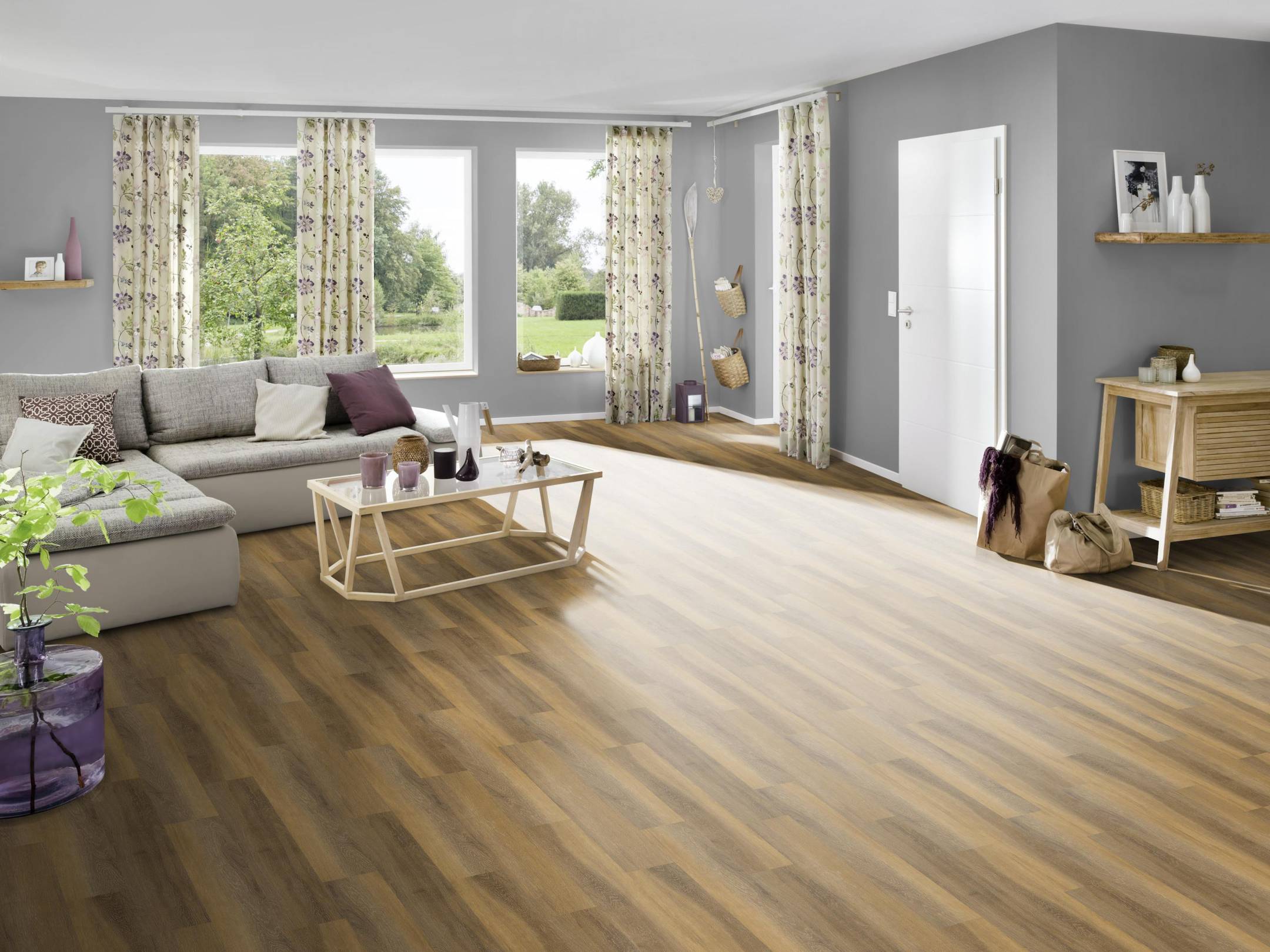 Dank seiner 100%igen Wasserfestigkeit eignet sich dieser Bodenbelag auch für Feuchträume wie das Badezimmer. Die Vielfalt an tollen Dekoren und Optiken, darunter Steinoptik und Holzoptik, ermöglicht es Ihnen, den Boden ganz nach Ihrem Geschmack zu wählen und so ein angenehmes Wohngefühl in Ihren Räumen zu schaffen.