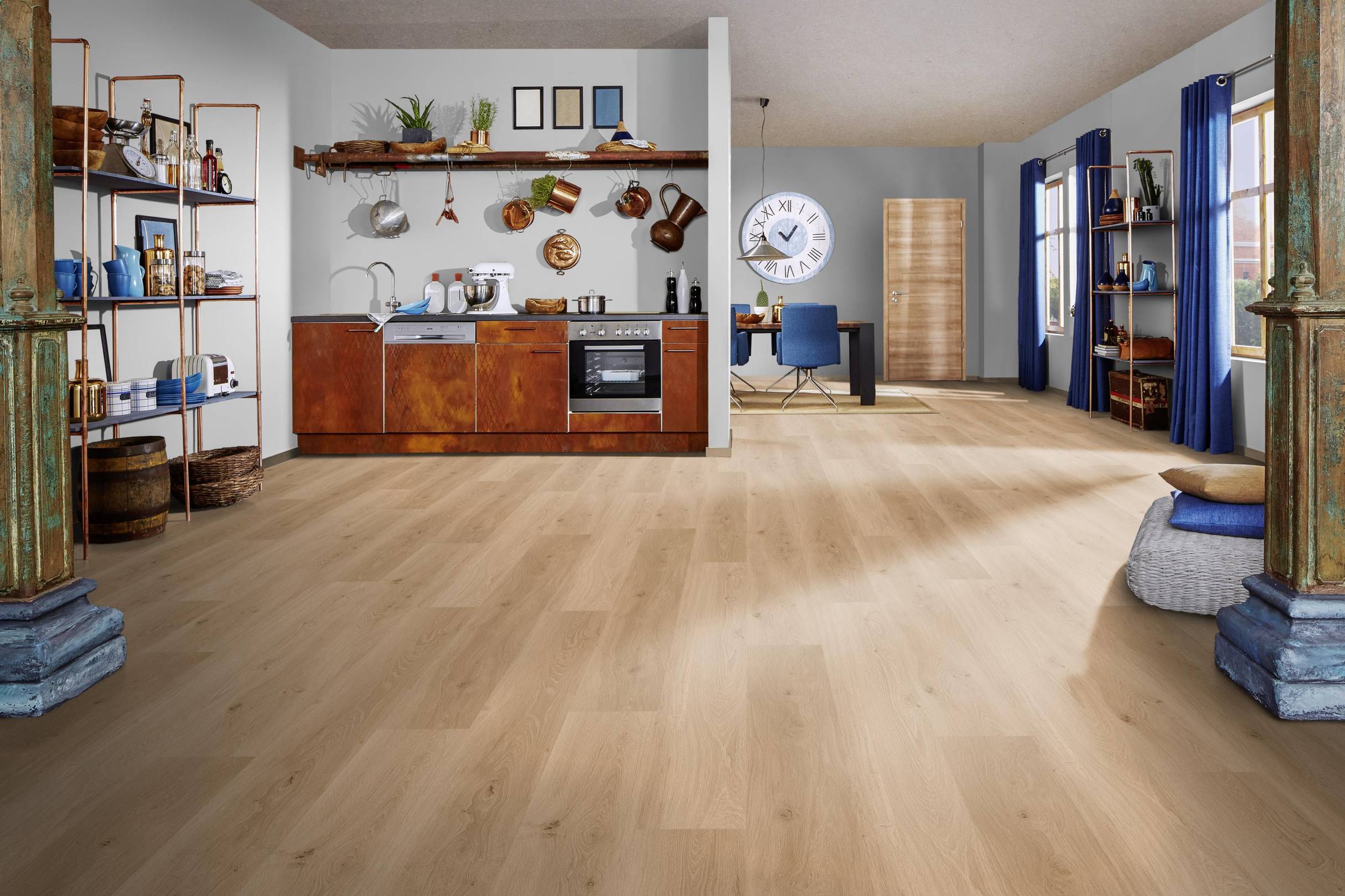 - VIELSEITIGE EINSATZMÖGLICHKEITEN: Dank seiner Feuchtraumeignung eignet sich der Vinylboden mit seiner Nutzungsklasse 23/32/42 nicht nur für Wohnräume, Küchen und Bäder, sondern auch für gewerbliche Bereiche