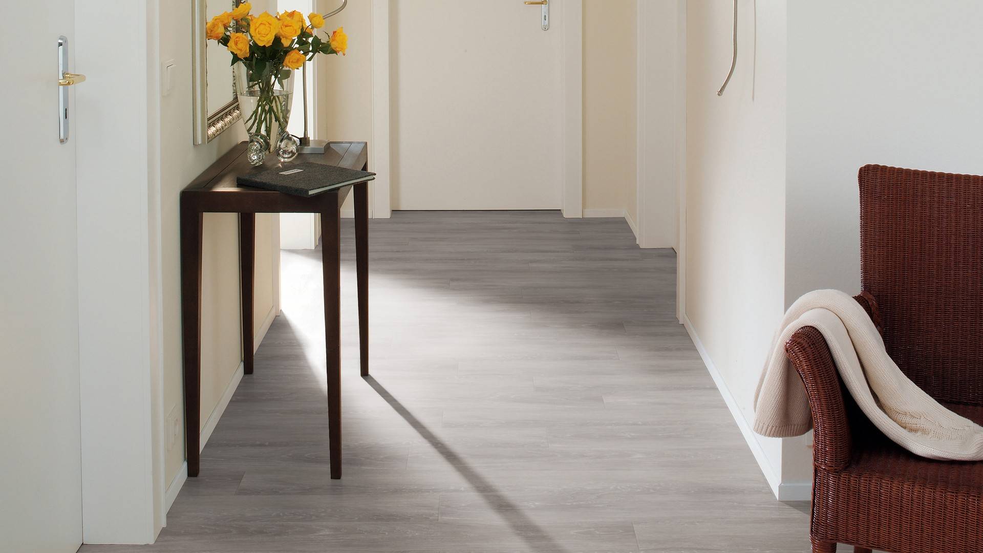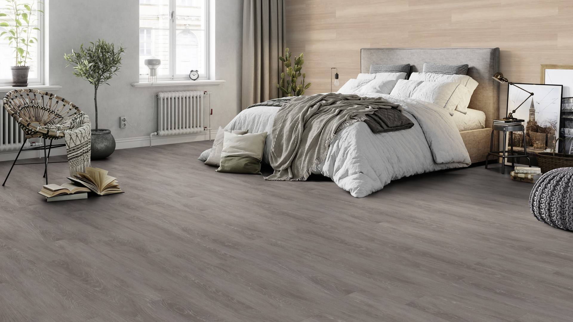 Der Bodenbelag inGrey Ash überzeugt durch seine perfekte Imitation natürlicher Holzböden. Die feine Maserung verleiht dem Boden eine authentische und hochwertige Ausstrahlung die an Böden aus Escheerinnert. Dank der vielseitigen Farbgebung passt er zu jedem Einrichtungsstil und schafft eine harmonische Atmosphäre in deinem Zuhause.