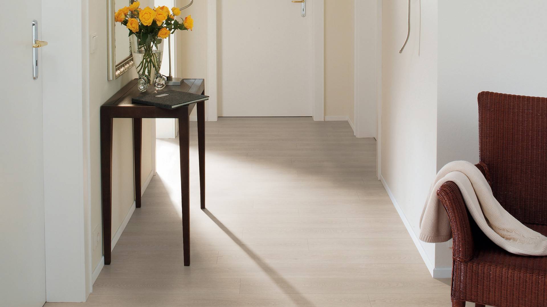 Der Bodenbelag inCanyon Oak überzeugt durch seine perfekte Imitation natürlicher Holzböden. Die feine Maserung verleiht dem Boden eine authentische und hochwertige Ausstrahlung die an Böden aus Eicheerinnert. Dank der vielseitigen Farbgebung passt er zu jedem Einrichtungsstil und schafft eine harmonische Atmosphäre in deinem Zuhause.